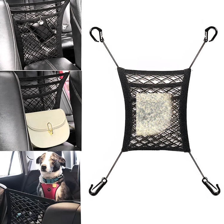 نظم دهنده داخل خودرو مدل توری که بهترین مکان نصب آن در بین دو صندلی سرنشینان جلو می باشد از ورود کودکان به جلو جلوگیری و این فضای بدون استفاده را با کمک جیب بزرگ محصول بسیار کاربردی می کند همچنین اگر حیوان خانگی دارید این محصول برای کنترل و عدم ورود به صندلی جلو بسیار مناسب می باشد. جهت نصب در فضای بین صندلی و پشت صندلی سرنشینان جلو قابلیت کشسانی بالا دارای 4 قلاب و کش در چهار گوشه برای اتصال و نگهداری