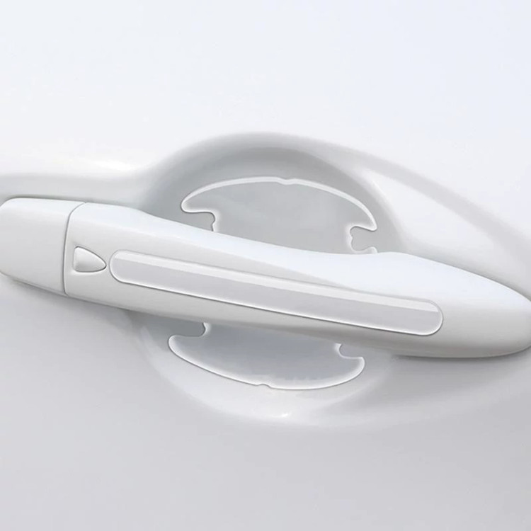 ست 8 تیکه ژله ای 4 عدد برای زیر دستگیره و 4 عدد برای روی دستگیره , آیینه بغل یا لبه در رنگ شفاف و قابل نصب روی هر خودرو با هر رنگ چسب قوی بر پایه آن بدون آسیب به رنگ خودرو پوشش دهی حداکثری فضای زیر دستگیره